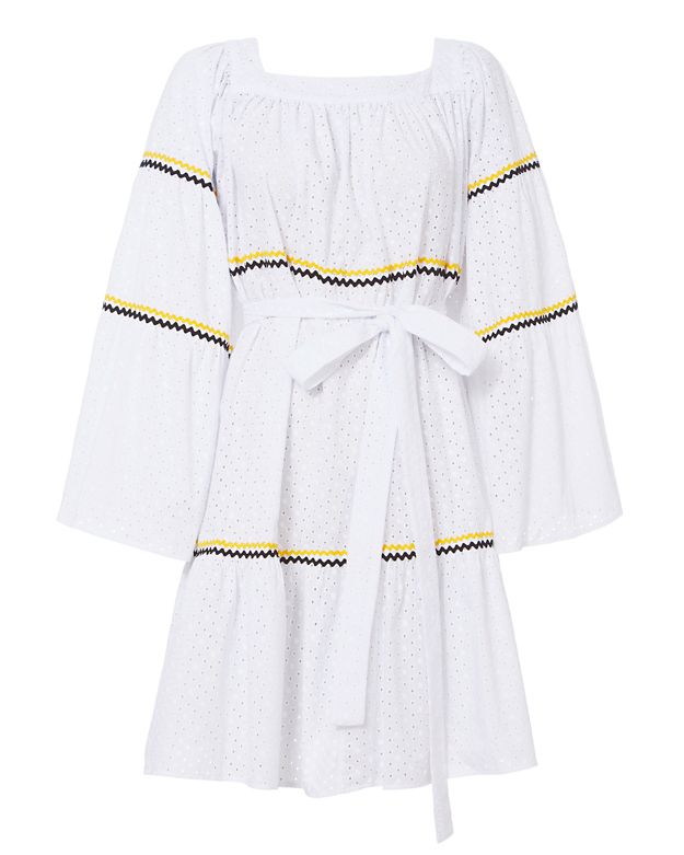 Temptation Positano's Tulipano dress features a smocked waist and is crafted at the skirt of alternating vertical panels of white cotton eyelet and crochet