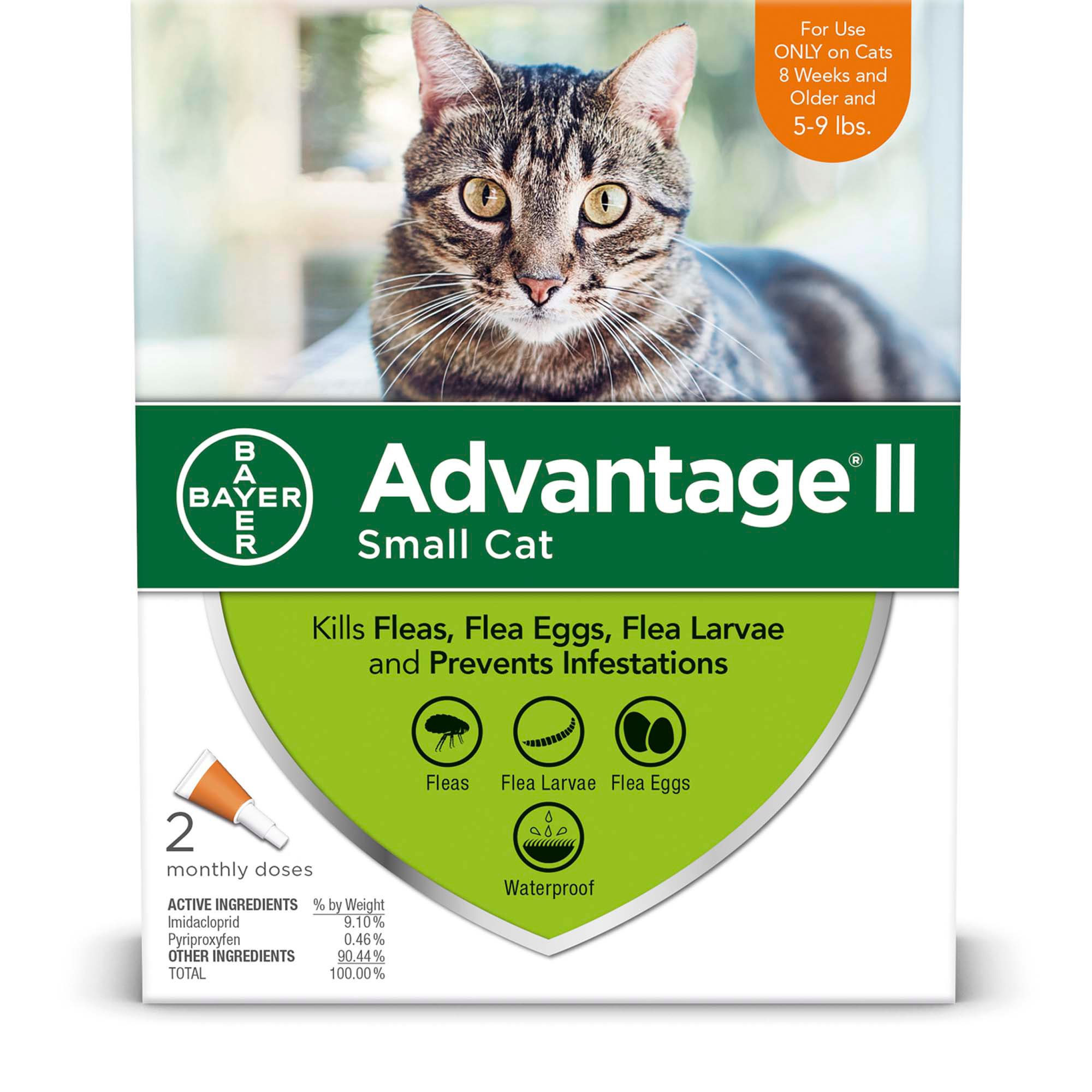 Advantage II Once-A-Month Topical Small Cat Flea Treatment, 2 mo., 5 to 9 lbs.