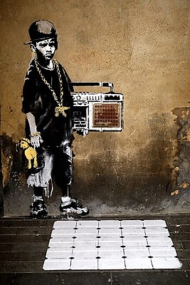 Buy Art For Less Hip Hop Youth by Banksy Painting Print on Wrapped Canvas; 36'' H x 24'' W x 1.5'' D