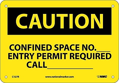 Caution, Confined Space No Entry Permit Required, 7X10, Rigid Plastic
