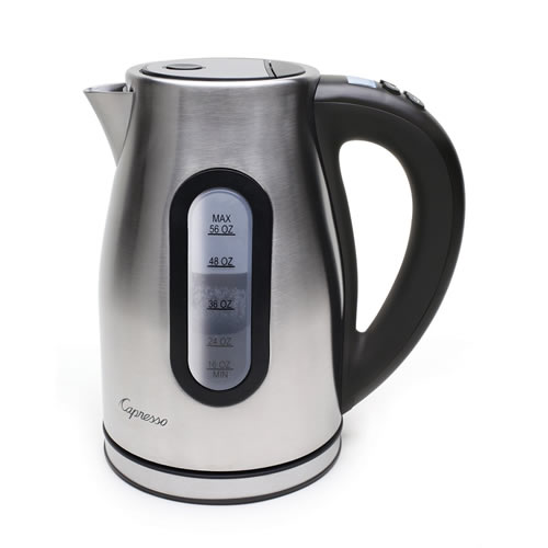 The Jura-Capresso H2O PRO Programmable Cordless Water Kettle (27604) can heat or boil up to 56 ounces of water at variable temperatures to extract the best flavor from all your teas