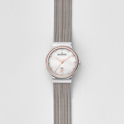 Skagen Ancher Striped Steel Mesh Watch 355Ssrs Mother-Of-Pearl
